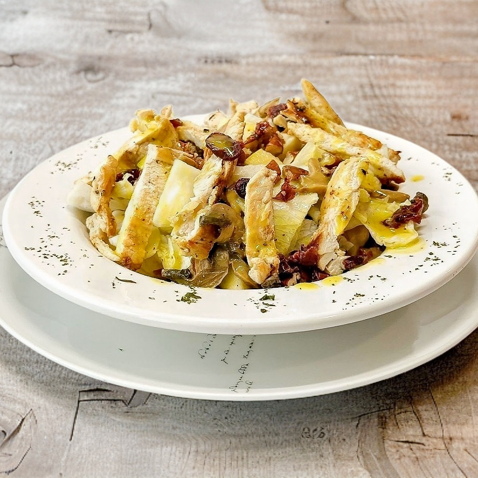 Fresca combinación de lechuga, champiñón, manzana, arándanos, nuez, acompañada de exquisita pechuga a la plancha y aderezo de mostaza con miel.