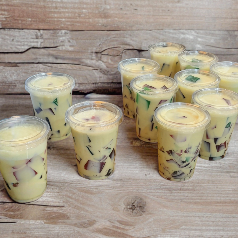 Gelatina base láctea con cuadros de colores