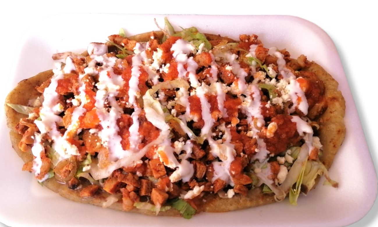 Carne de res casera, vegetales, salchicha, tocineta, queso daisy y jamón con papas.