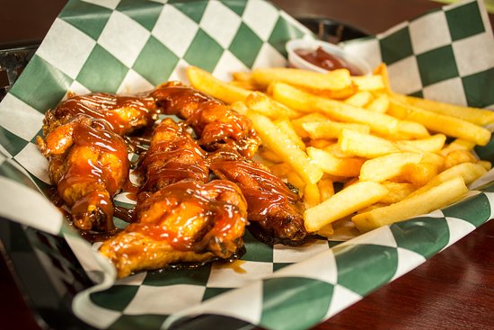 Alitas empanizadas y frita incluye papas y salsa ranch capsu. Y salsa chile