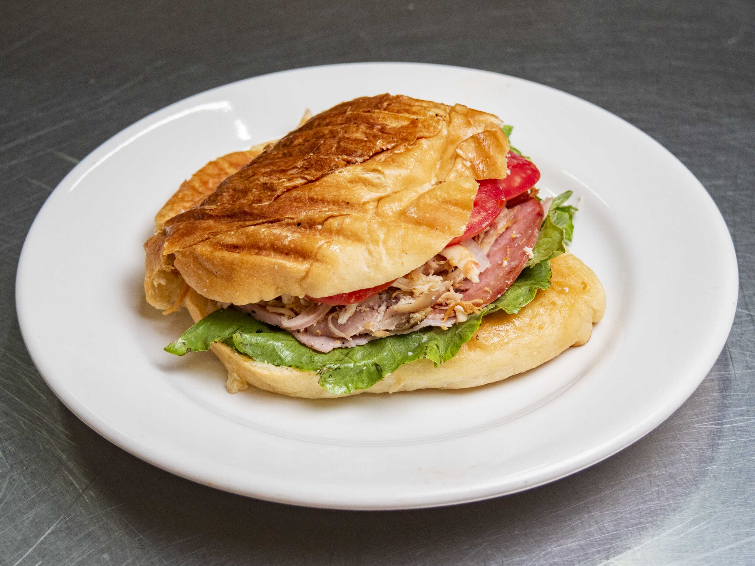 Pollo, jamón, queso, salchicha, salami, tocino, tomate, romanita, cebolla y aderezo.