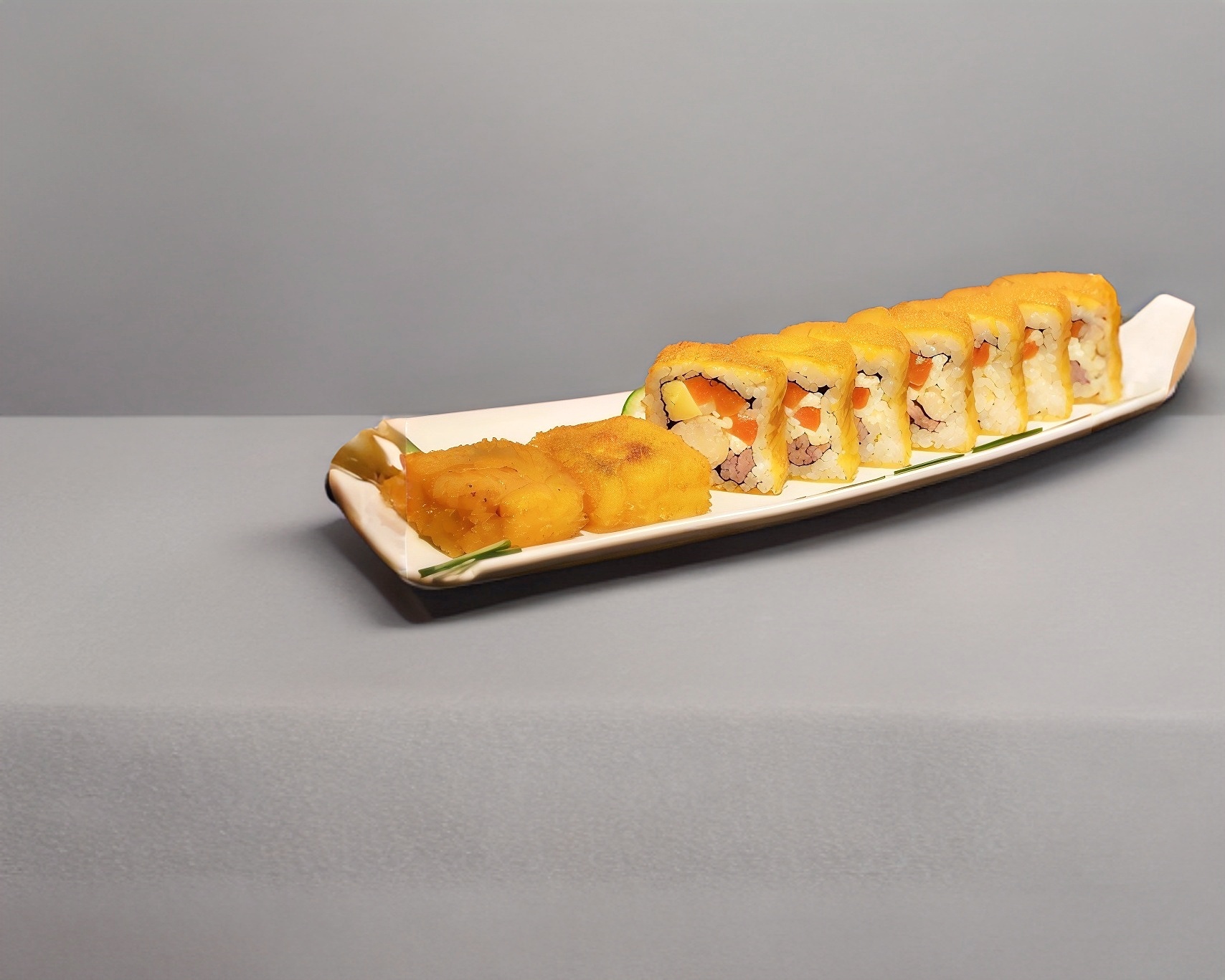 XD: arrachera, piña, queso crema, pepino, XF: ajonjolí negro.