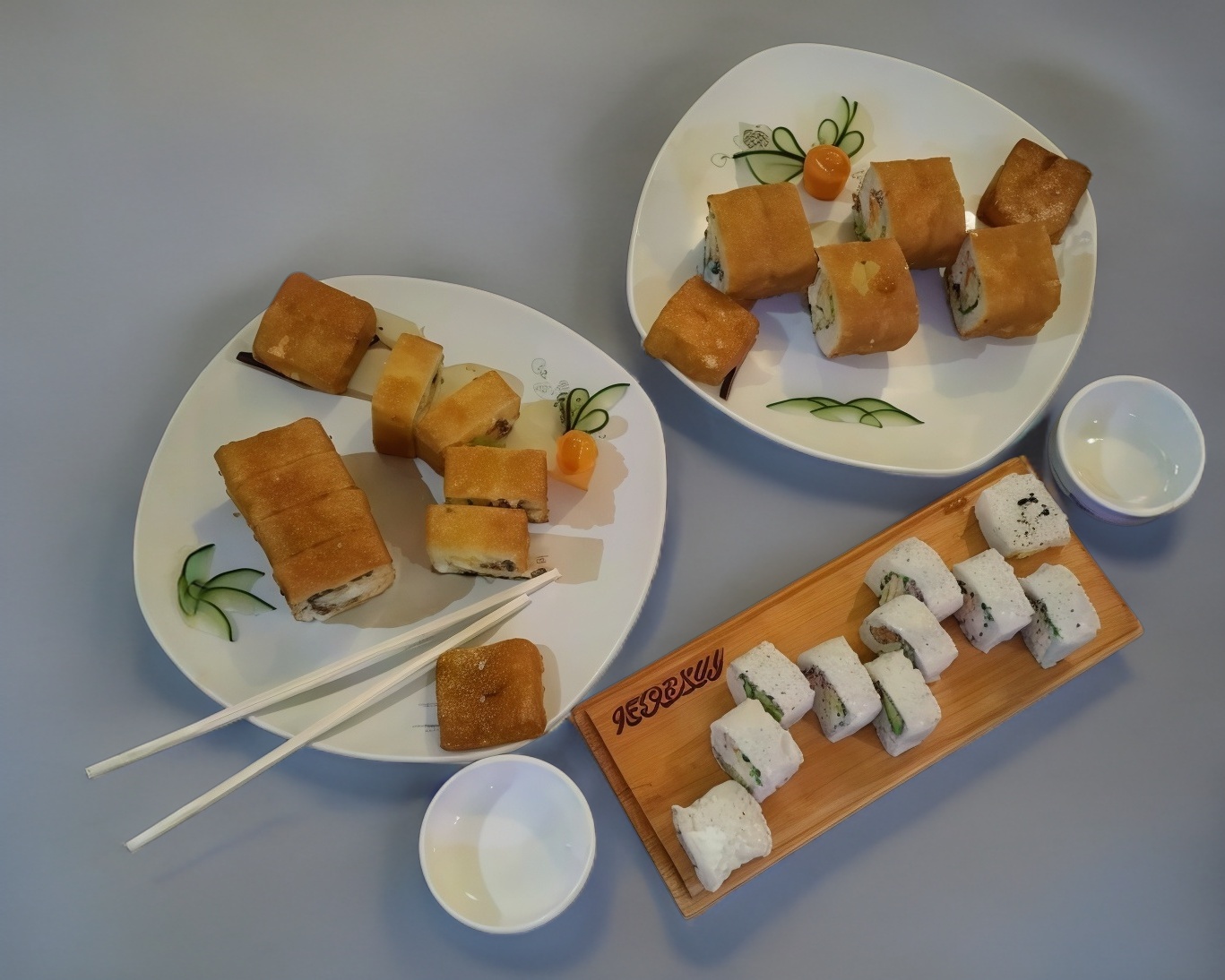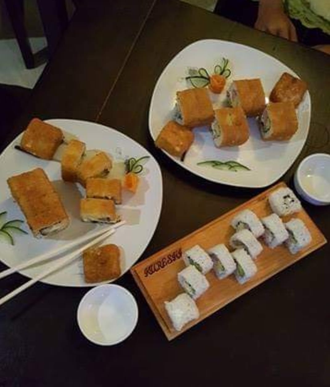 XD: pollo, queso manchego, pepino, XF: ajonjolí negro y queso crema.