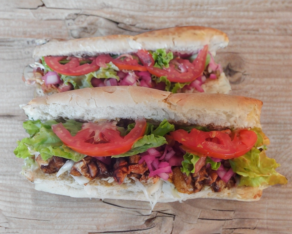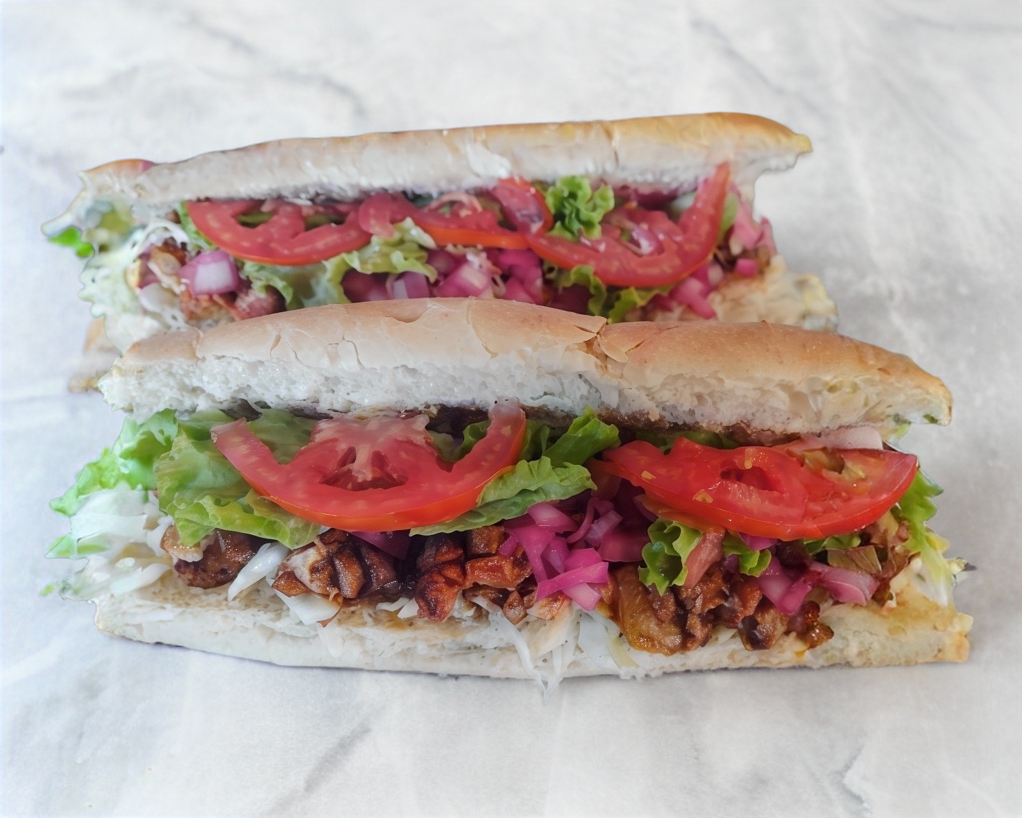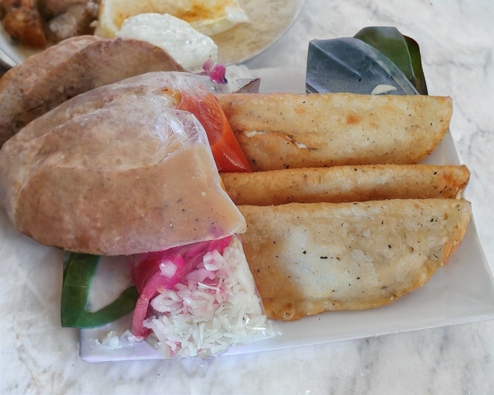 Empanada de carnita con tomate, cebolla roja, lechuga, repollo