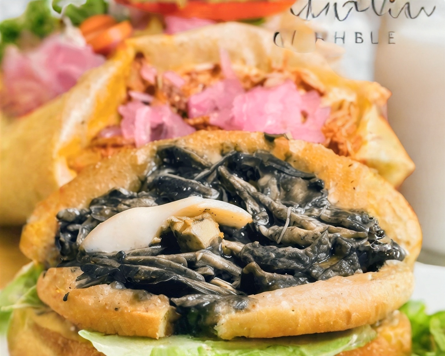 pollo,cebolla curtida,repollo,lechuga,mayonesa o frijol
