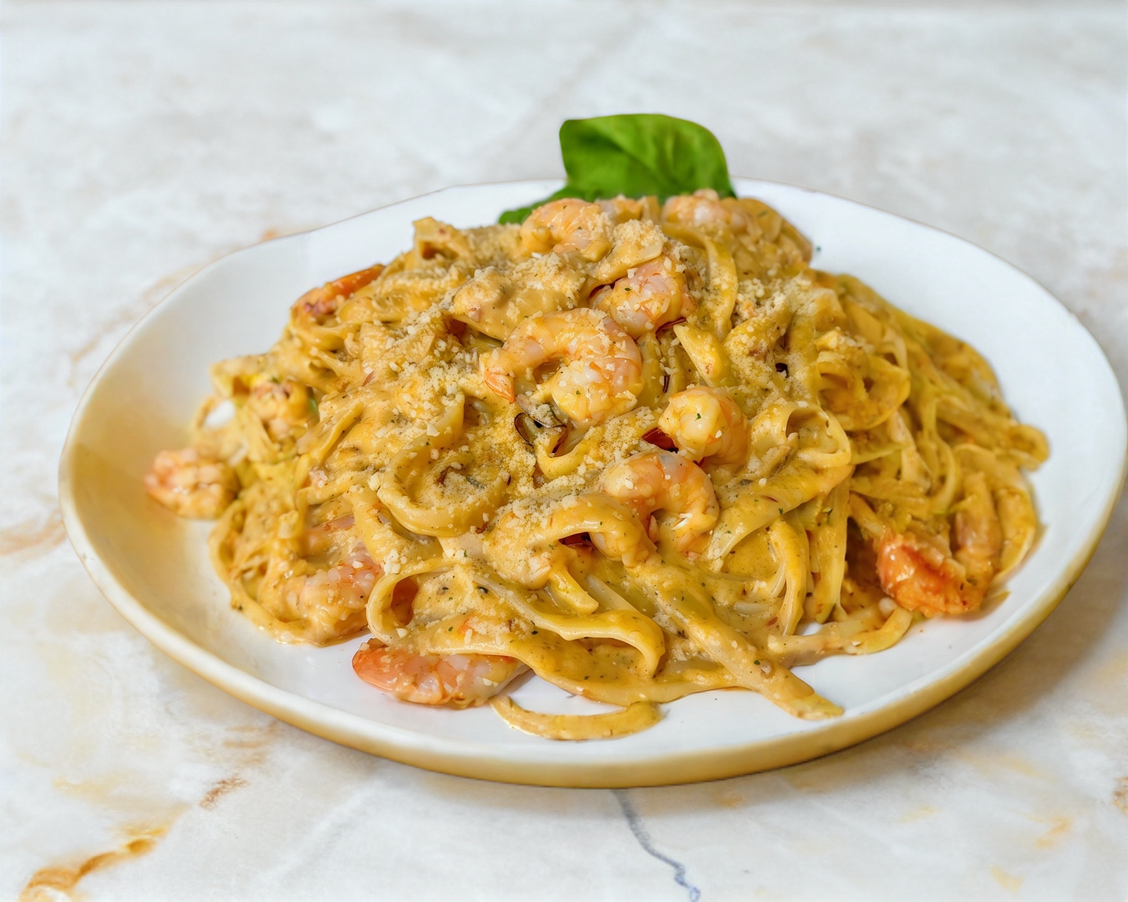Pasta Fetuccini acompañada de camarones y bañada de nuestra salda chipotle.