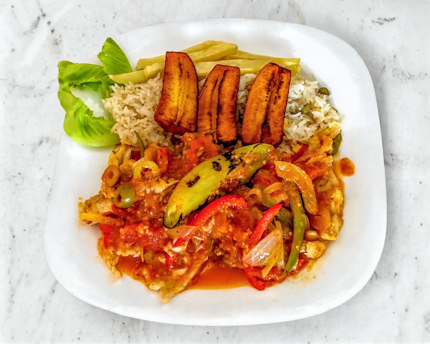 Tradicional platillo del golfo, a base de filete de pescado fresco acompañado de aceitunas y chiles güeros.