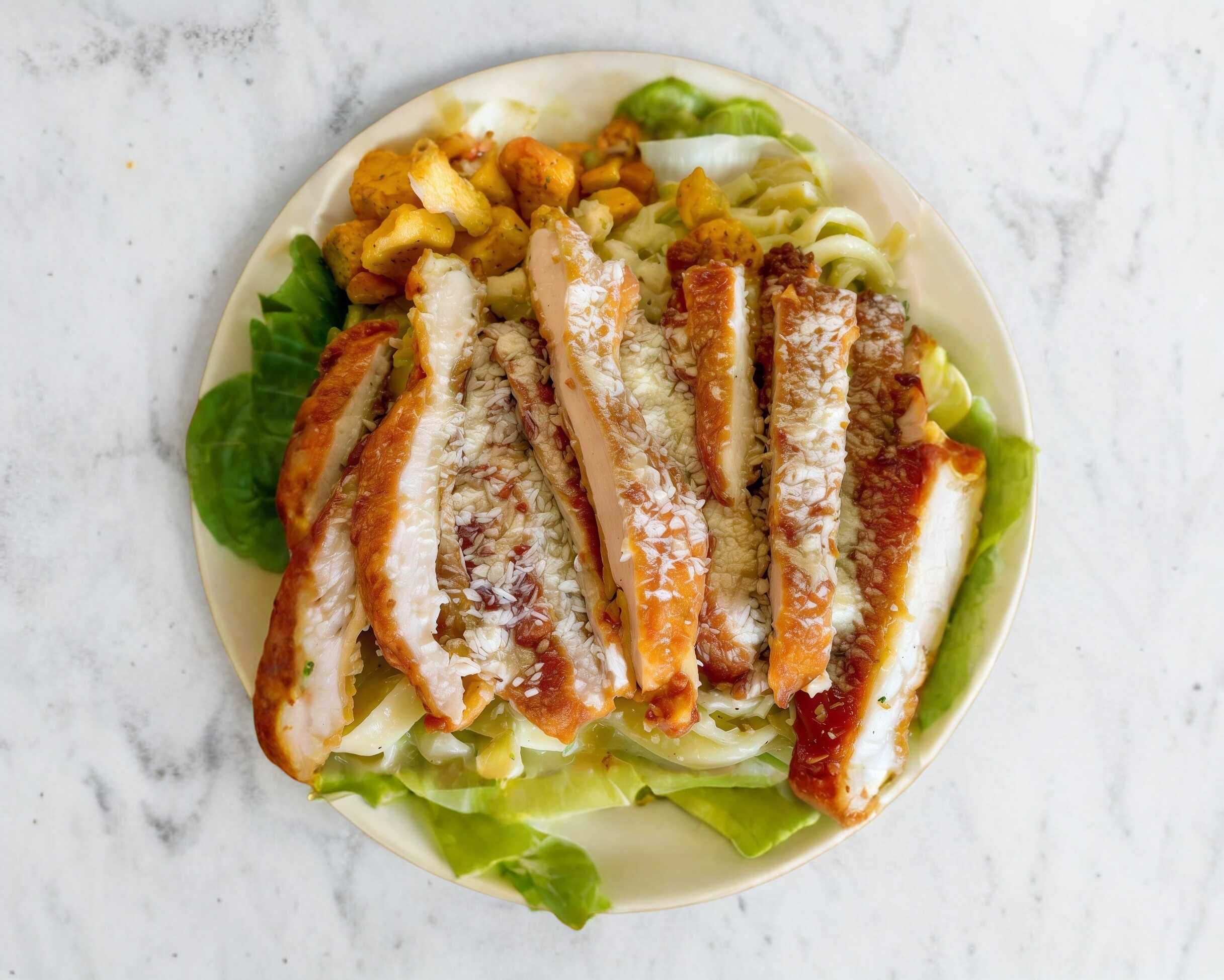Pasta Fetuccini con pollo y bañada en salsa alfredo