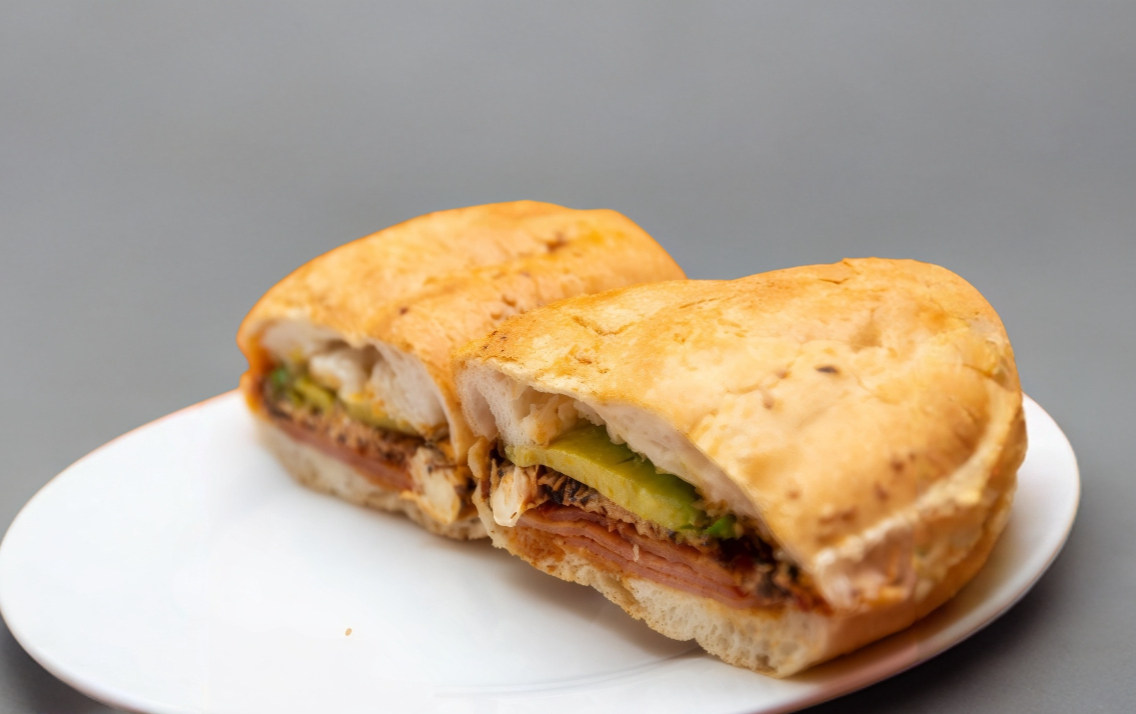 Pierna, huevo, queso amarillo y queso oaxaca.