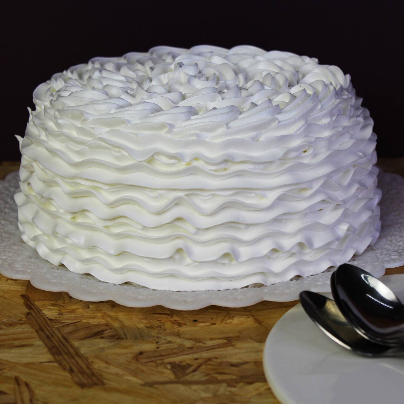 Hecho con crema de queso de bola, mojado con ponche de 3 leches y cobertura de mrengue.
