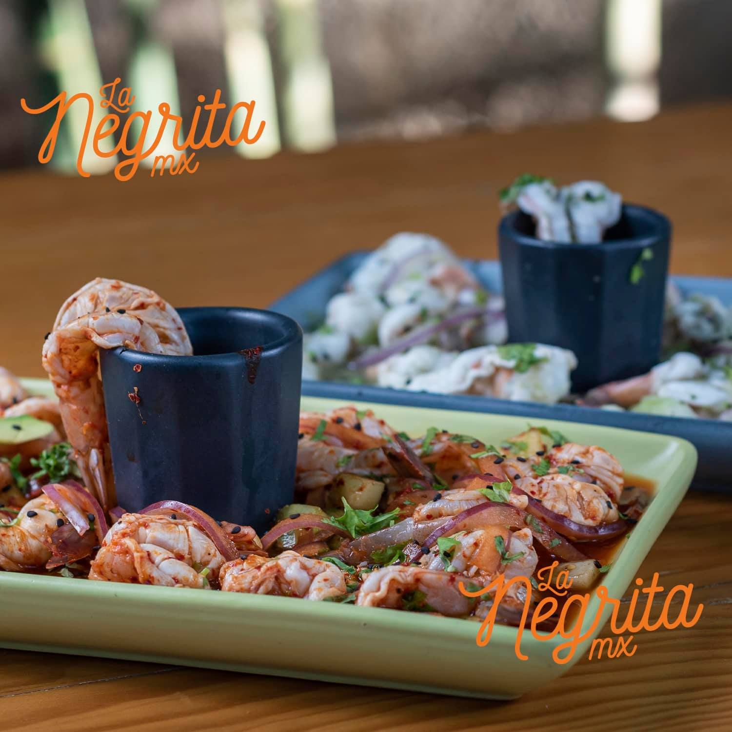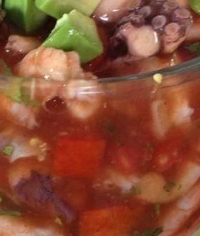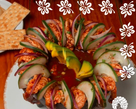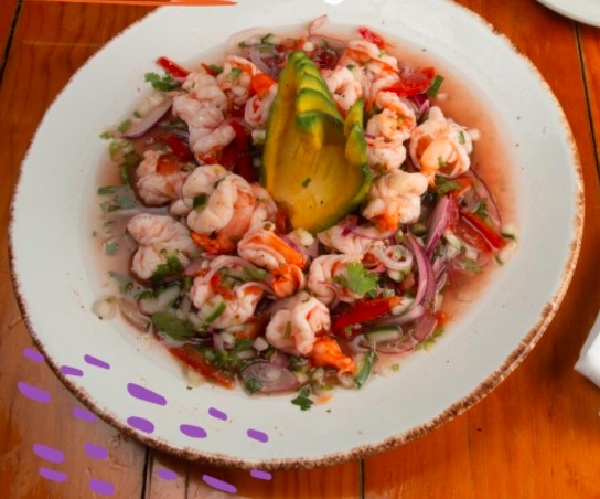200g. de camarón, acompañado de pepino, cebolla, mango, chile serrano y aguacate. Macerado con salsa de la casa.