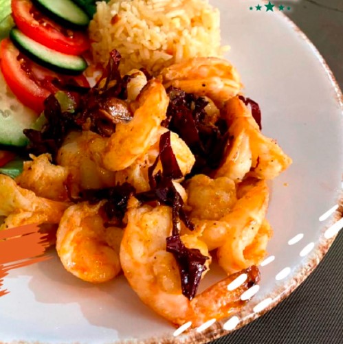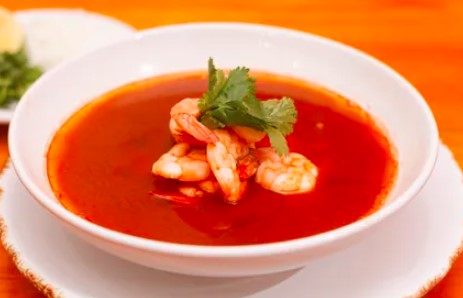 Exquisito caldo ligeramente picoso hecho a base de la mezcla de productos del mar, acompañado de camarón cebolla y cilantro