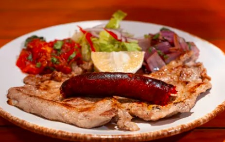 Deliciosa Carne de Puerco fileteada bien curtida con naranja agria, ajo, y pimienta hecha a la parilla, Disfrútala con sus tradicionales guarniciones: Frijoles , aguacate , totopos y salsa de la casa.