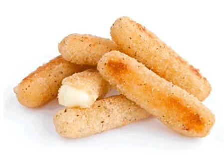 Queso mozzarella, empanizados con crujiente pan molido de la casa.