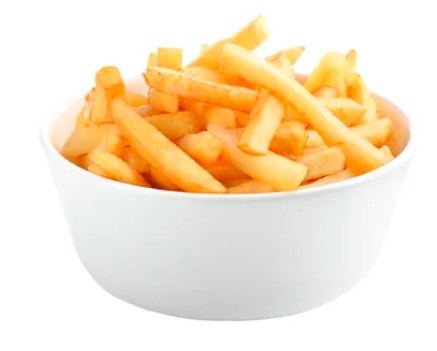 Deliciosas y tradicionales papas a la francesa con tocino crujiente y queso.