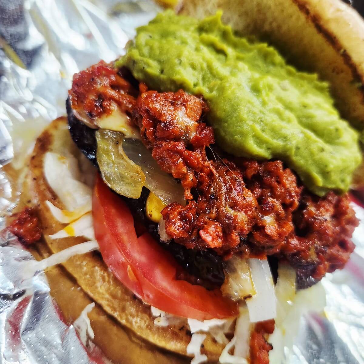 150g de carne premium de Sirloin , fundida con queso americano y cebolla caramelizada, coronada con guacamole fresco, tiritas de maíz crocantes, rodajas de tomate y lechuga romanita. Todo servido en pan artesanal parrillero aderezada con mayonesa y catsup. Acompañada de una porción de papas a la francesa.