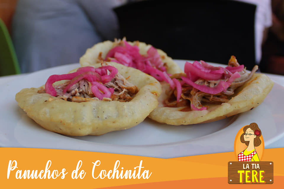 Frijol, pollo , repollo, lechuga, cebolla y salsas de la casa.