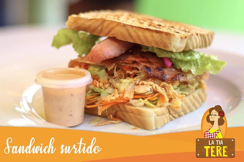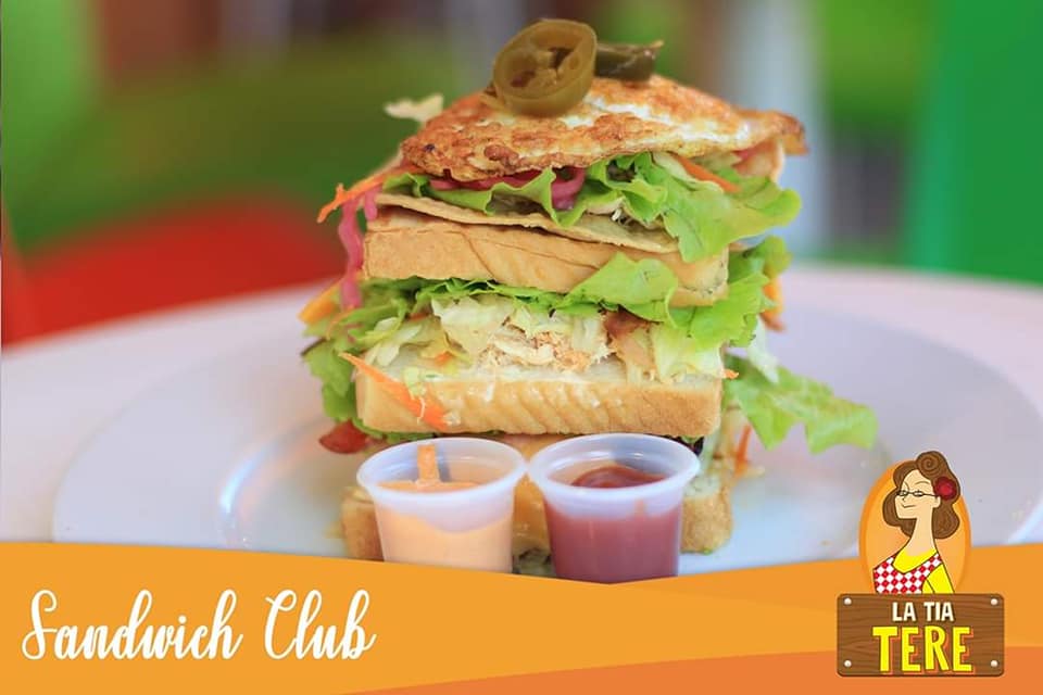 2 Niveles de pan, mayonesa, pollo, jamón, salami, tocino, salchicha, queso, cebolla, chile jalapeño, romanita con zanahoria y 1 tostada con 1 huevo estrellado cocido.