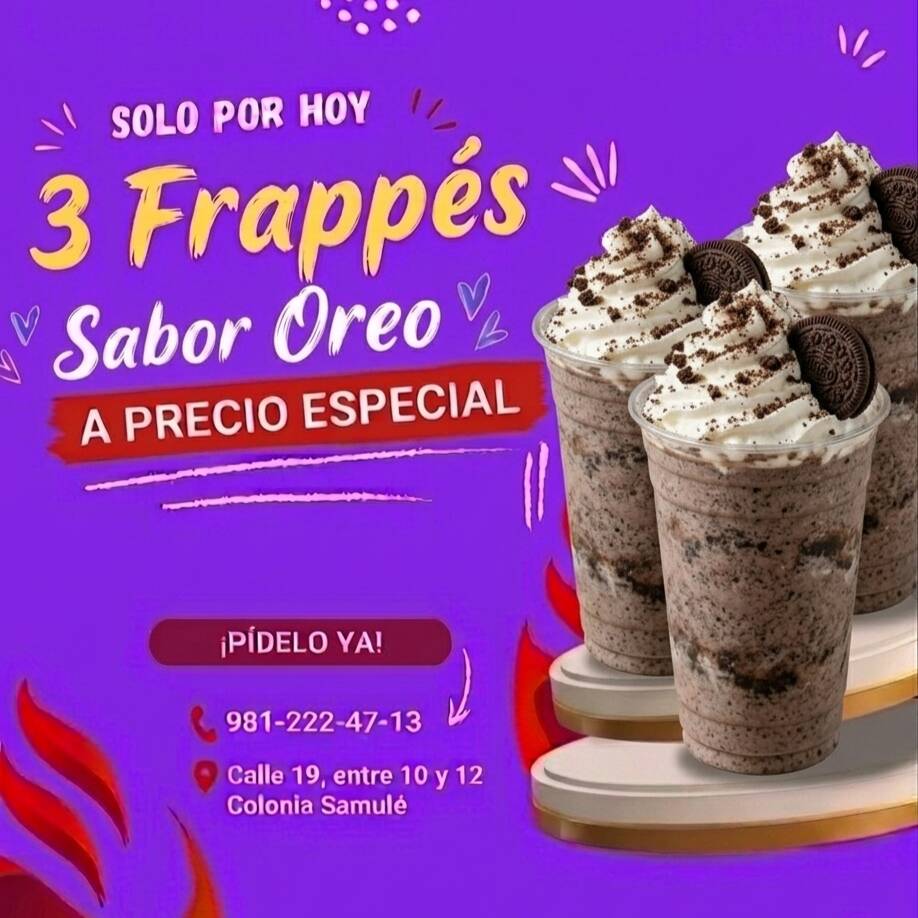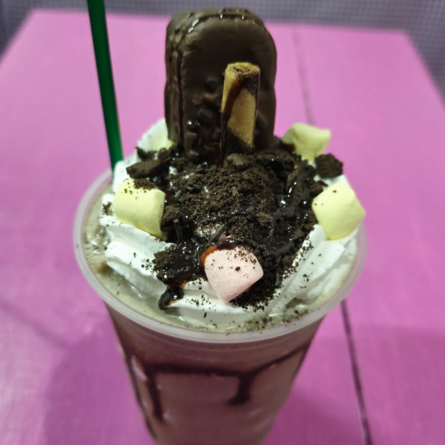 GALLETA OREO, CHOCOLATE LIQUIDO, HIELO TRITURADO, LECHE DESLACTOSADA, LECHE CONDENSADA,CANELA, VAINILLA