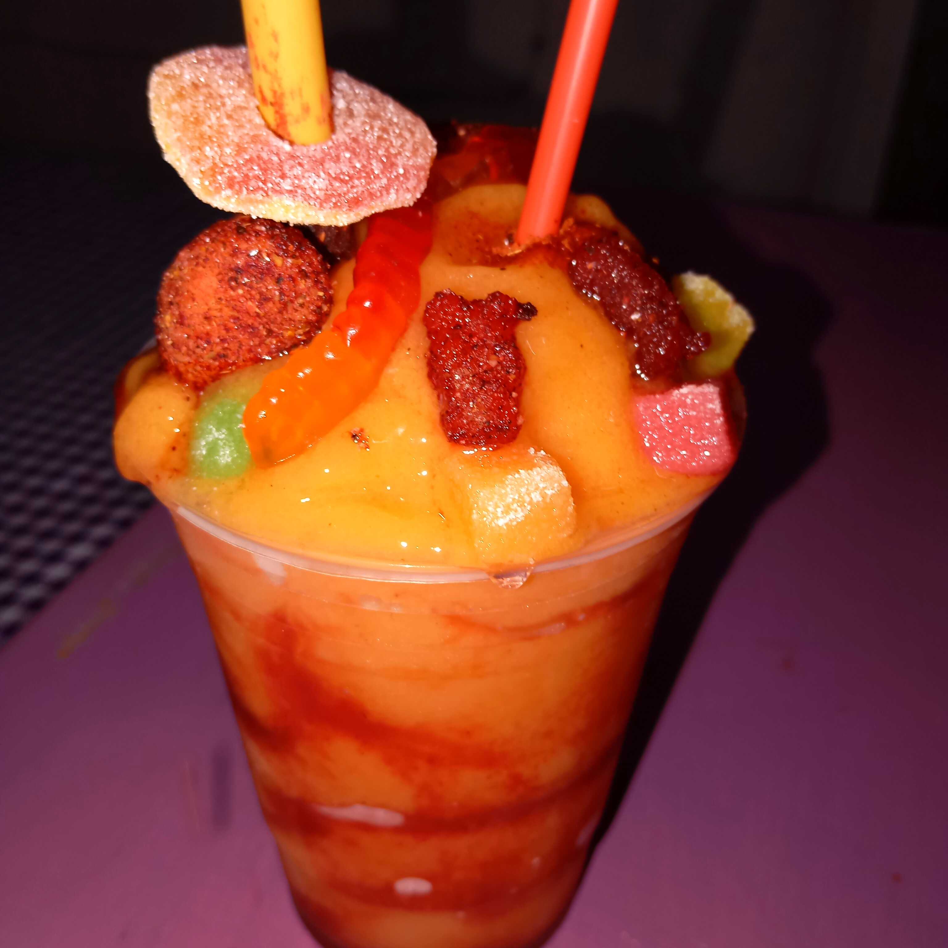 FRESA CONGELADA, HIELO MOLIDO, CHAMOY LIQUIDO Y EN POLVO, GOMITAS Y VARITA DE TAMARINDO.