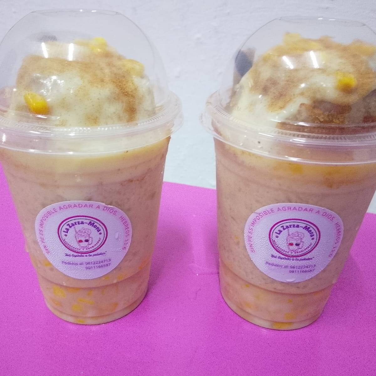 ELOTE ENLATADO, LECHE DESLACTOSADA LIQUIDA, LECHE CONDENSADA, HIELO TRITURADO, CANELA EN POLVO Y VAINILLA LIQUIDA.