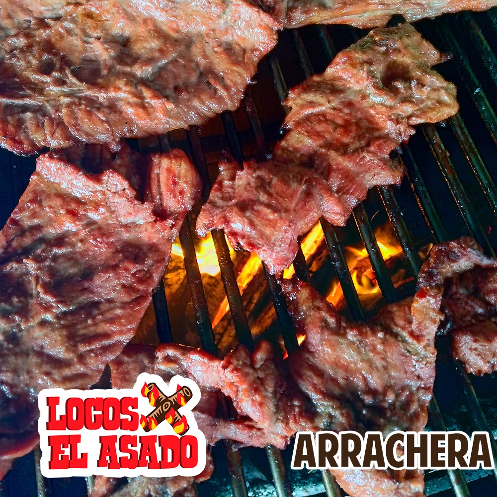 Jugosa y exquisita arrachera asada a la leña, acompañada de nuestros ya famosos frijoles locos, cebolla, salchicha asada, tortillas, limón y salsas.