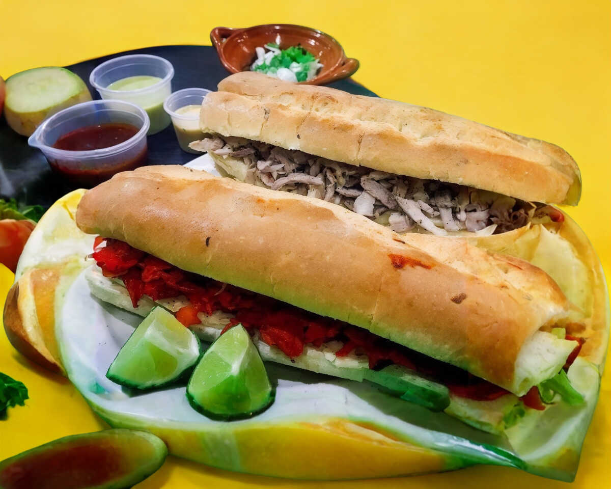 Bolillo Grande acompañada con Carne al Pastor Adherezado con Crema de Ajo
