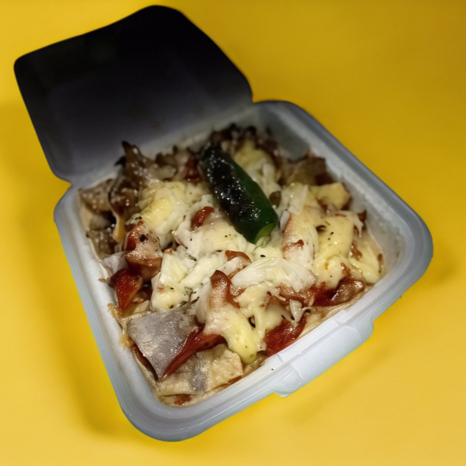 carne arabe,tocino,jamon,cebolla, carne pastor y queso