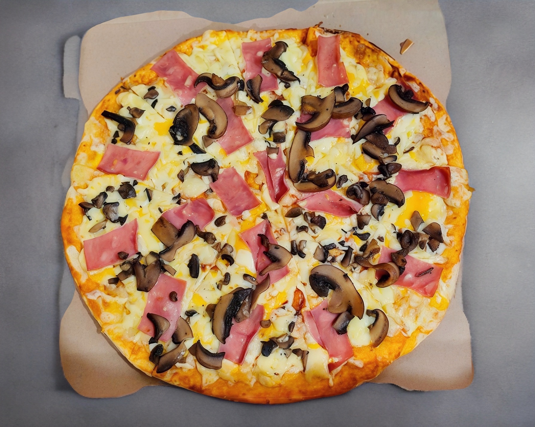 Pizza con dos ingredientes a elegir: pepperoni, champiñones, salami, salchicha de pavo, salchicha de asar, piña, chorizo, jamón o pimiento.
