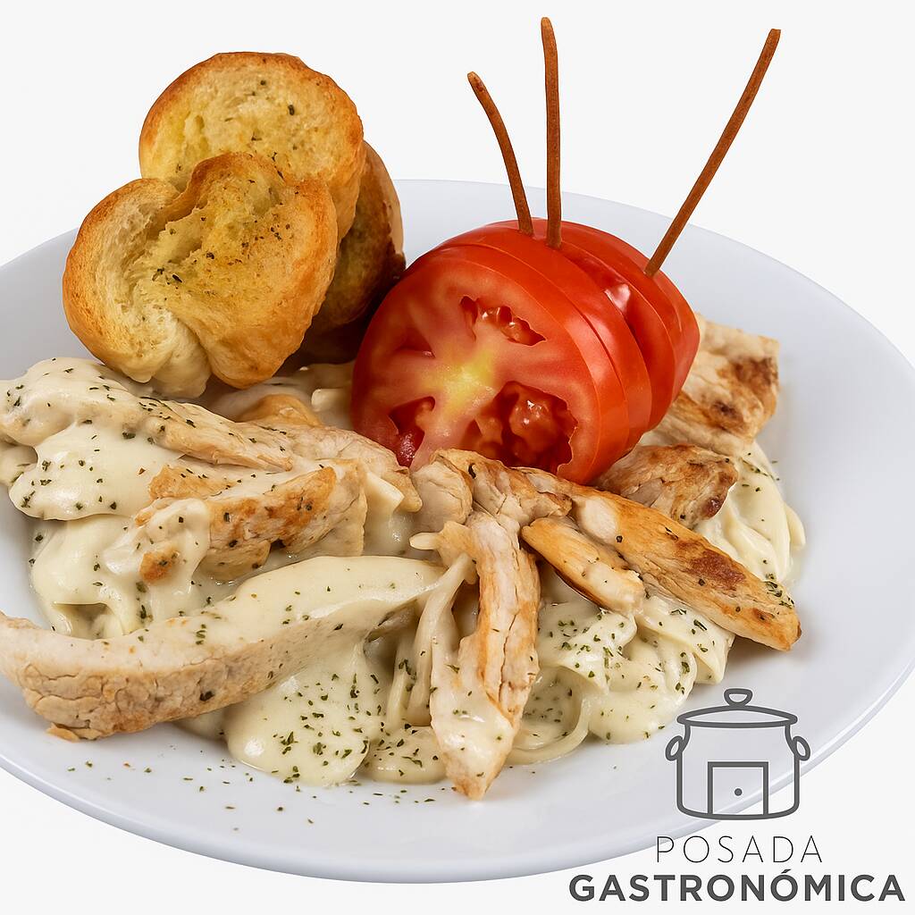 Exquisita pasta alfredo con pollo crunch o a la plancha,