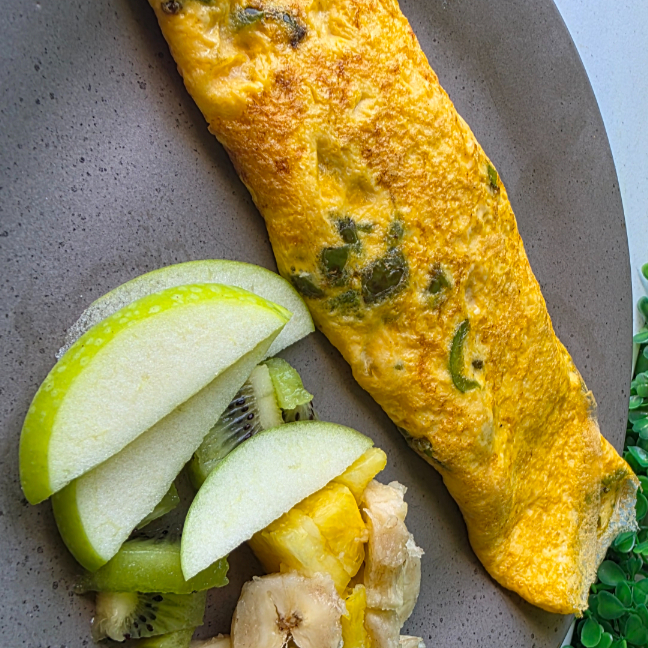 Omelette con Pimiento y Queso Manchego con Fruta