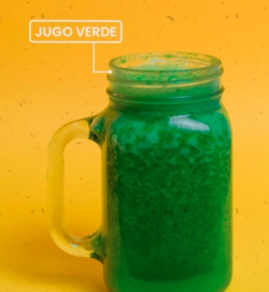 Jugo de espinaca, jengibre, piña, pepino, apio, limón y perejil.