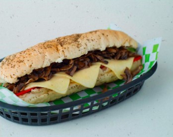 Baguette artesanal con pepperoni, champiñones naturales a la parrilla con jamón serrano, queso manchego aderezo especiado de tomate.