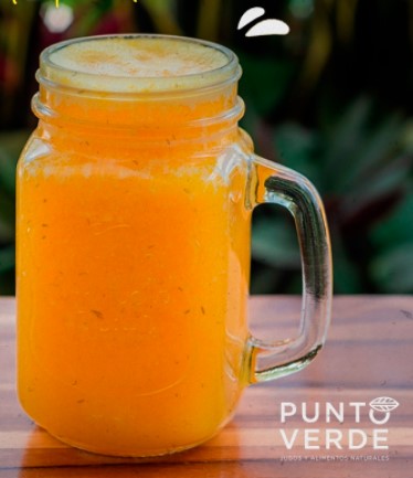 Jugo de naranja, papaya, linaza y jengibre.