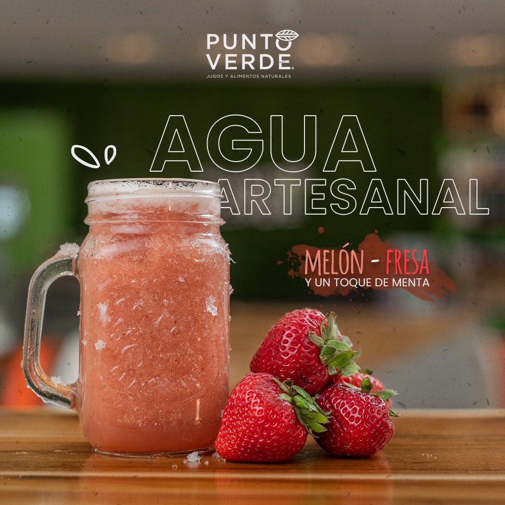 Deliciosa combinación con agua de melón más fresas y un toque de menta.
