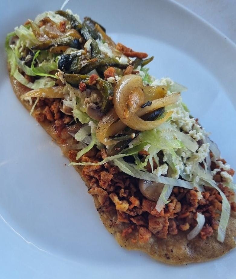 Masa al comal semi suave, con carne de tu preferencia, champiñones, rajas y queso fresco.