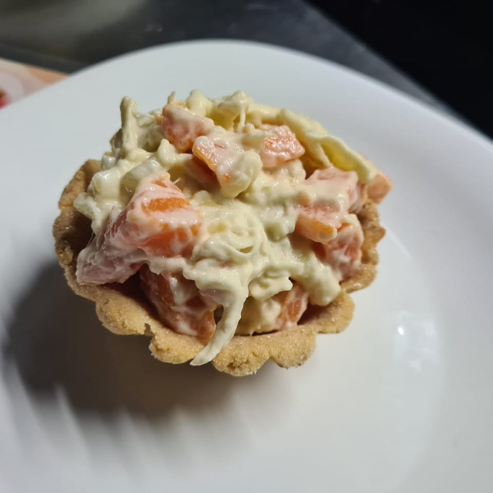 Canastita a base de masa de hojaldre con ensalada de pollo