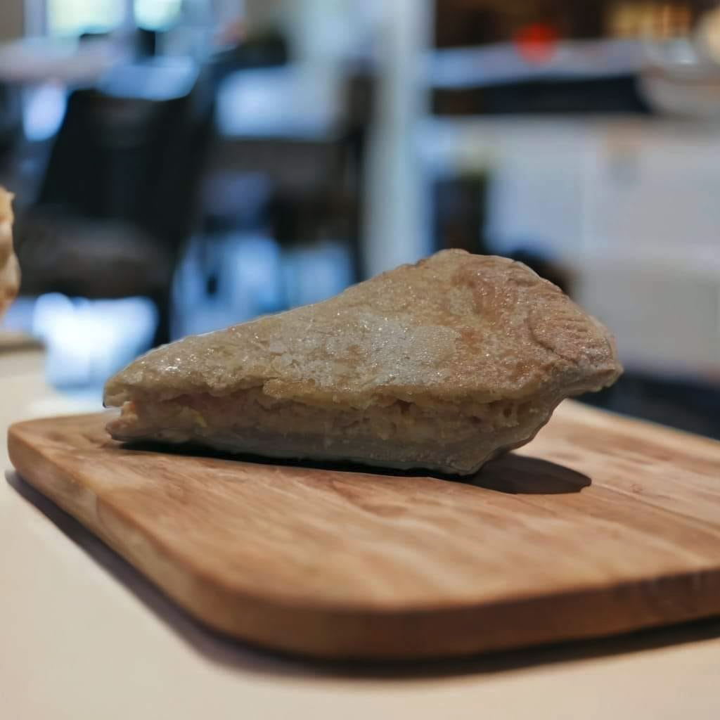 2 waffle, jamon virginia.queso manchego,mermelada de frambuesa, rebosado