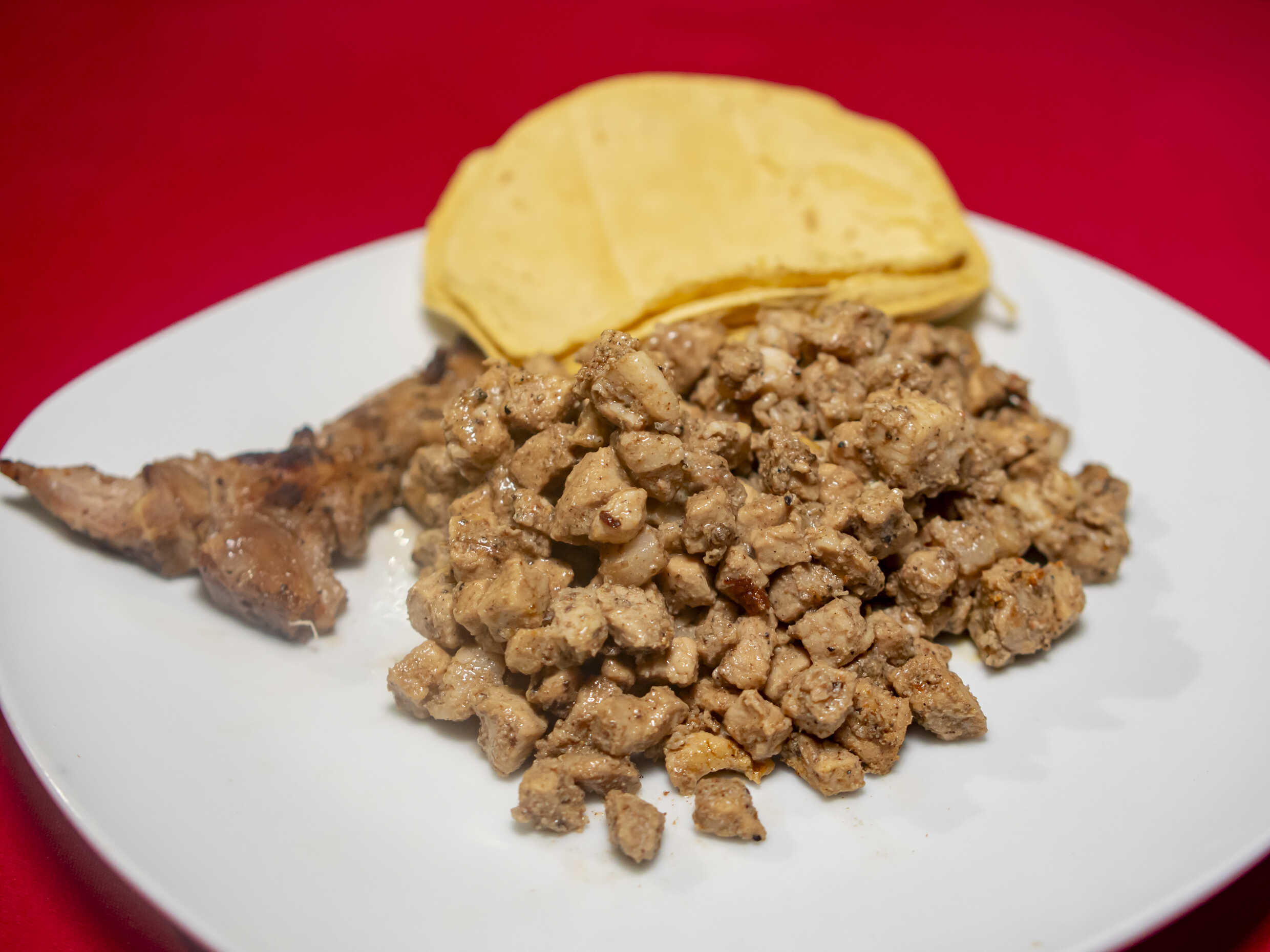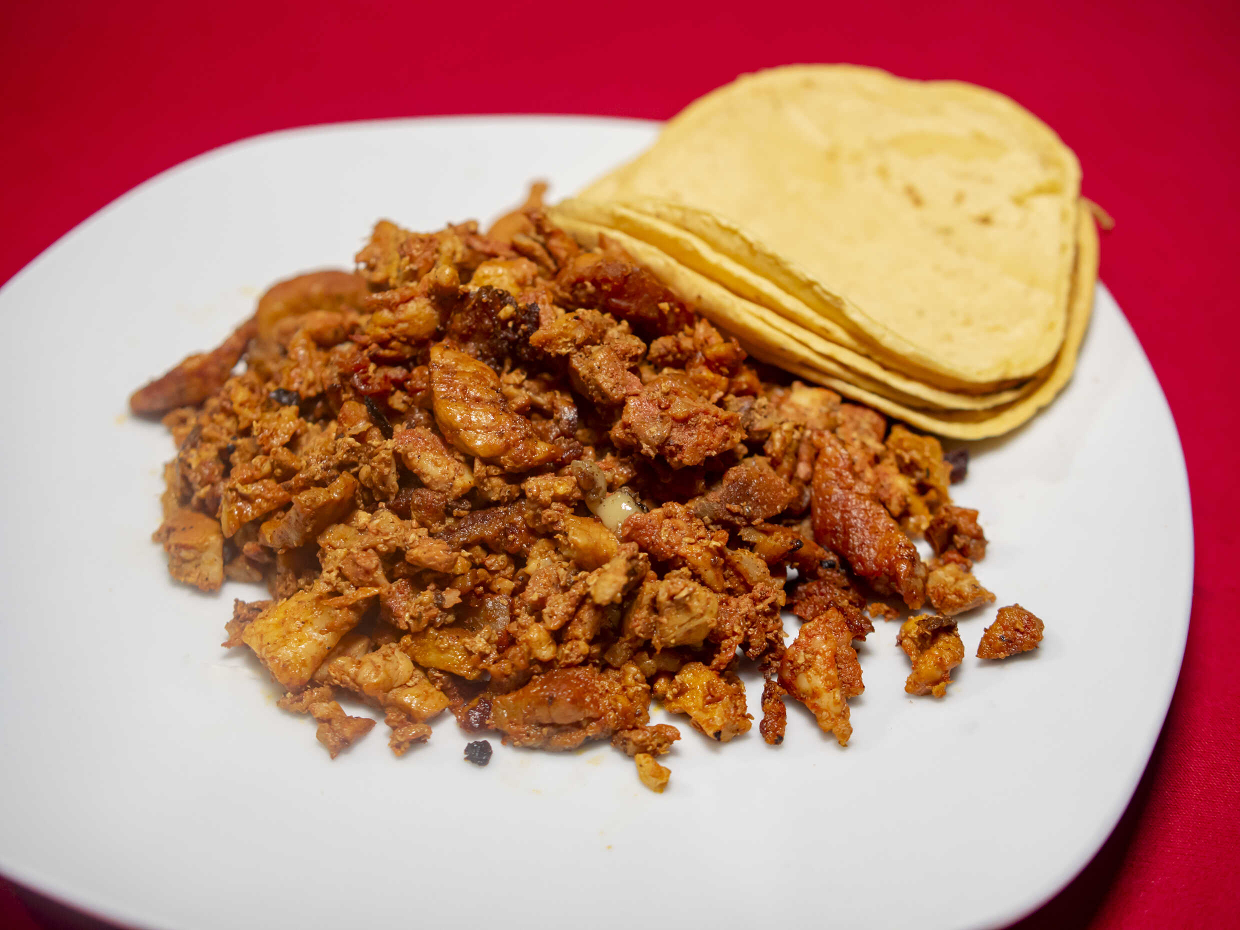 1000 gr de carne de chuleta, acompañado de salsa verde, salsa roja, salsa piñanetorepollo, 20 pzas de tortilla de maíz ( puede ser mixto harina y maíz)