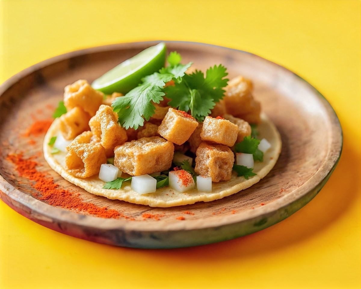 Tortilla de maíz rellena con tripa frita y dorada de cerdo