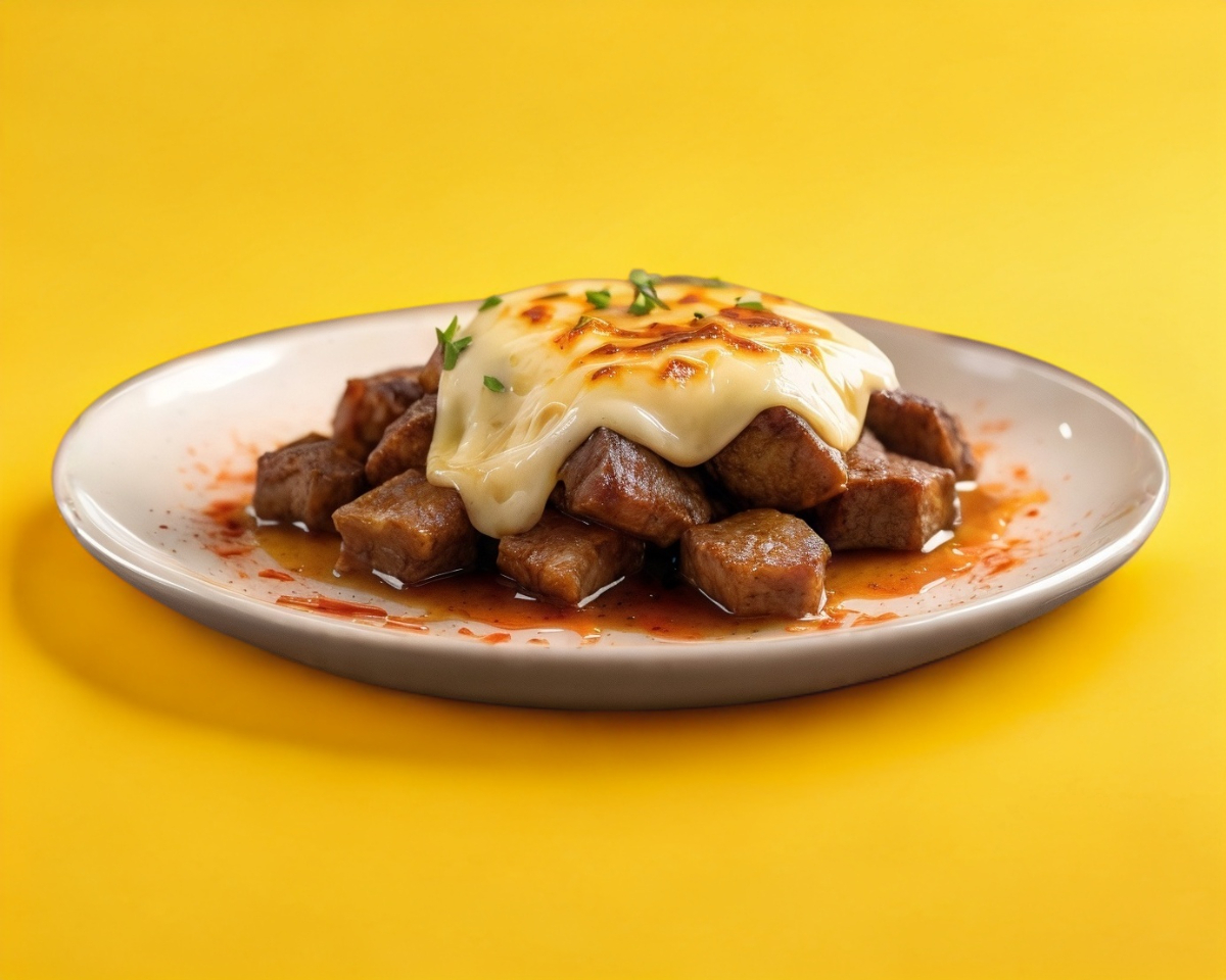 Tortilla de harina rellena de arrachera de res y queso gratinado