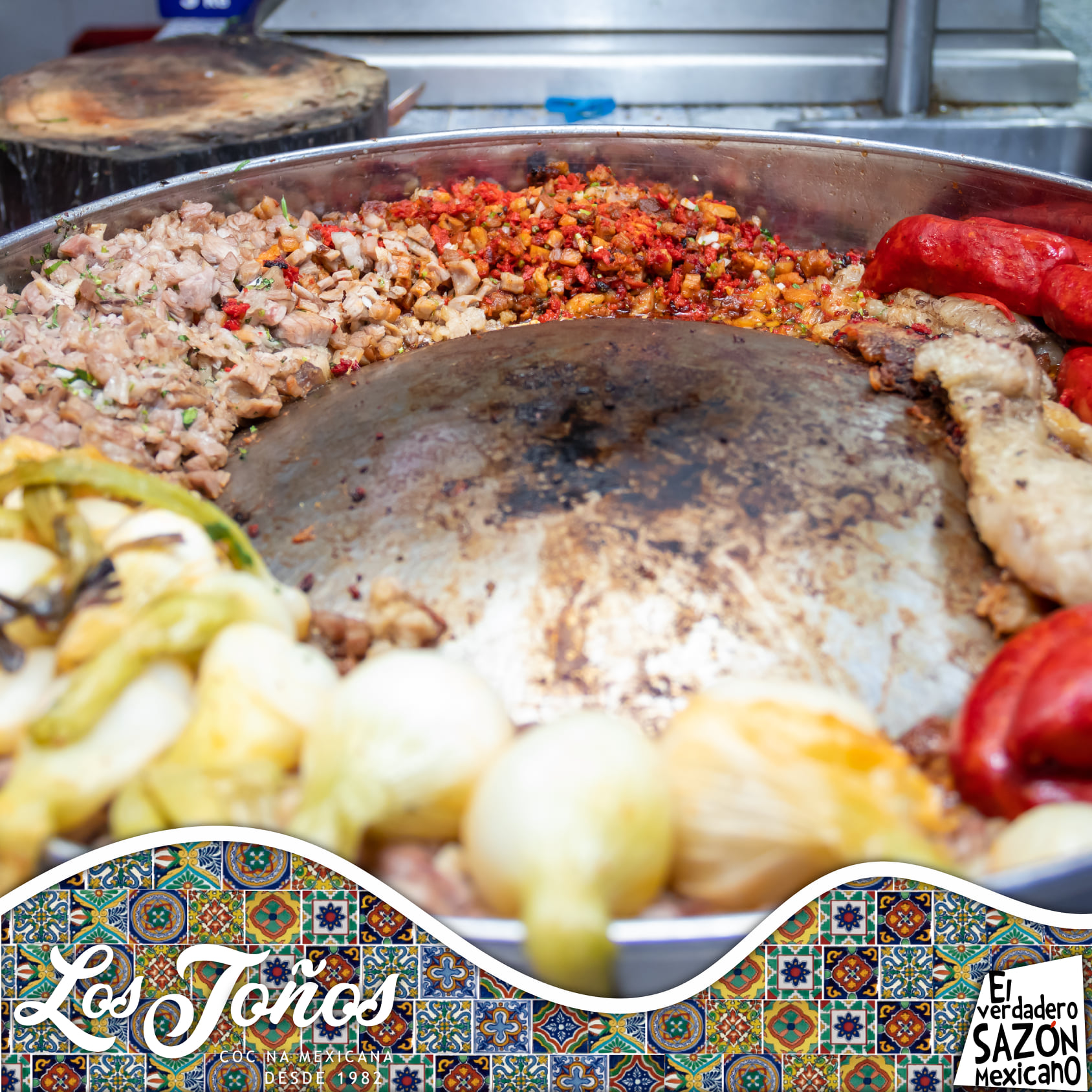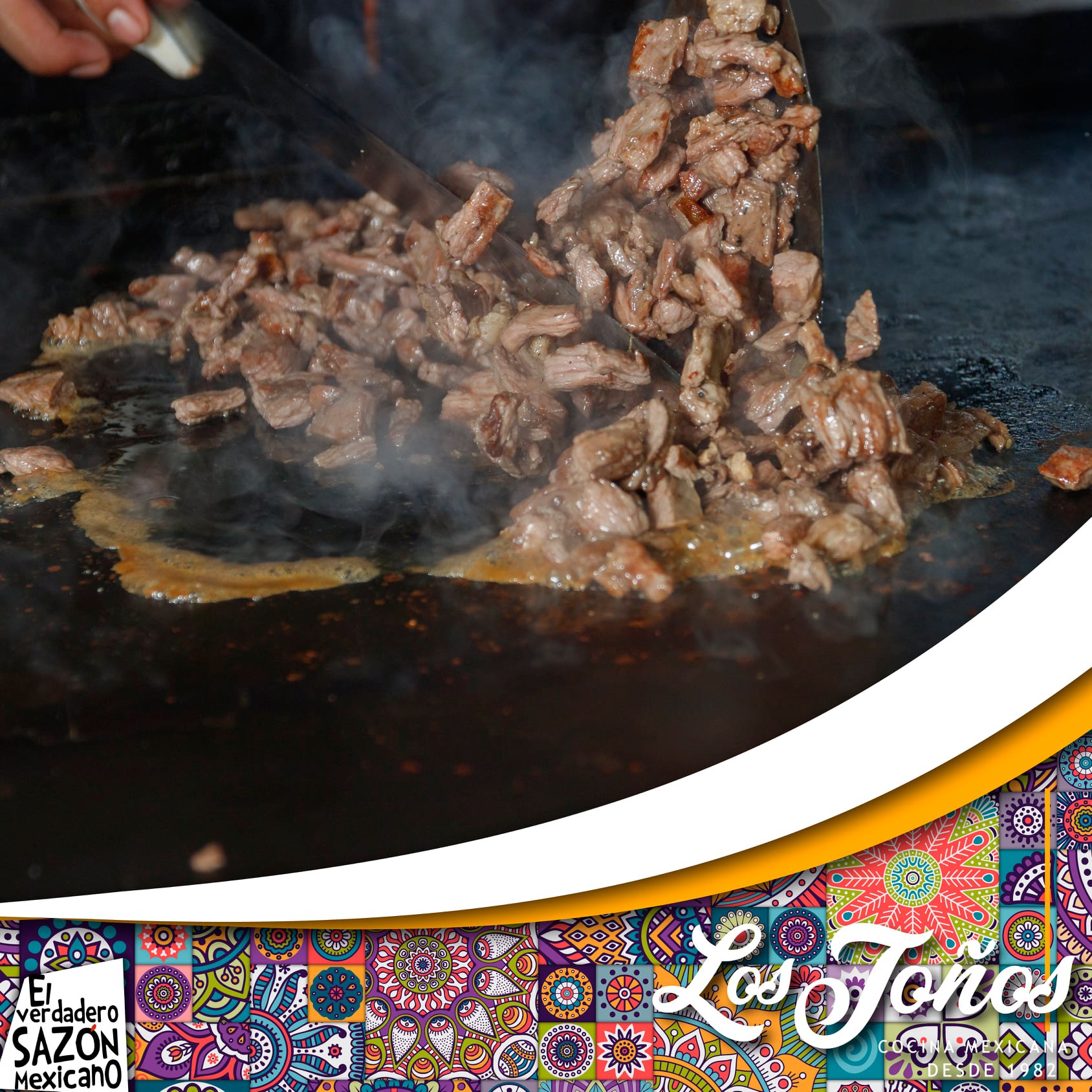 Carne a elegir, jitomate, cebolla y chile morrón.
