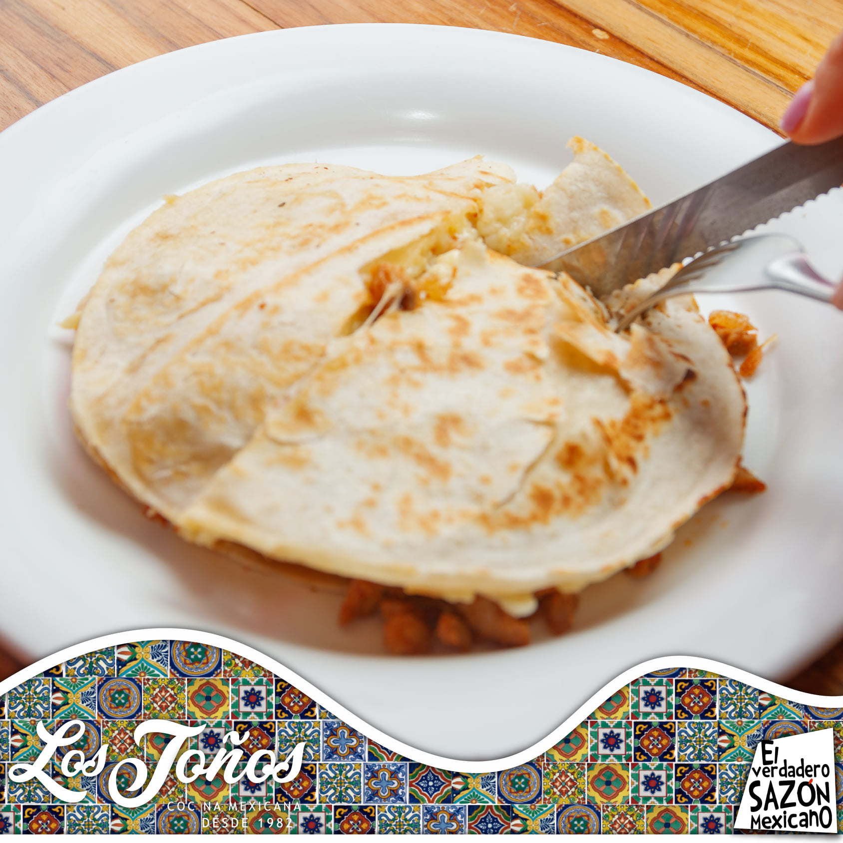 Carne de tu elección, a la plancha, acompañado de dos quesadillas de maíz y guacamole.