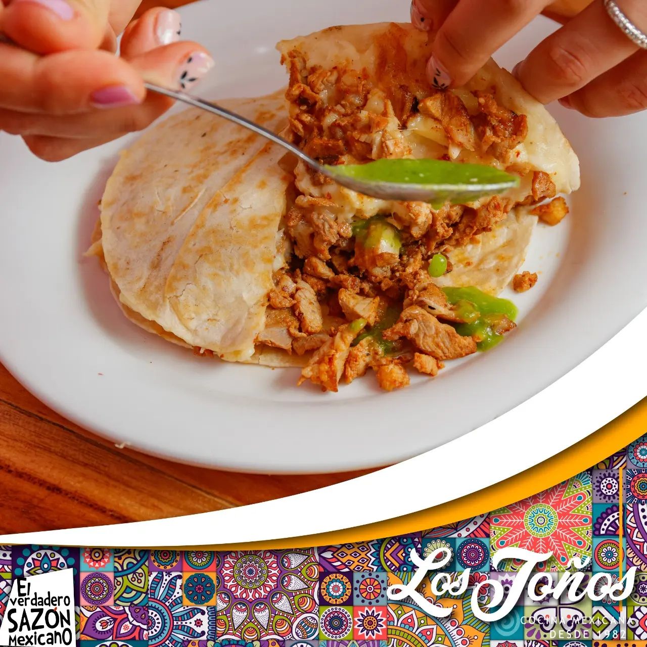 Gringa con tortilla de harina, queso derretido y carne al pastor.