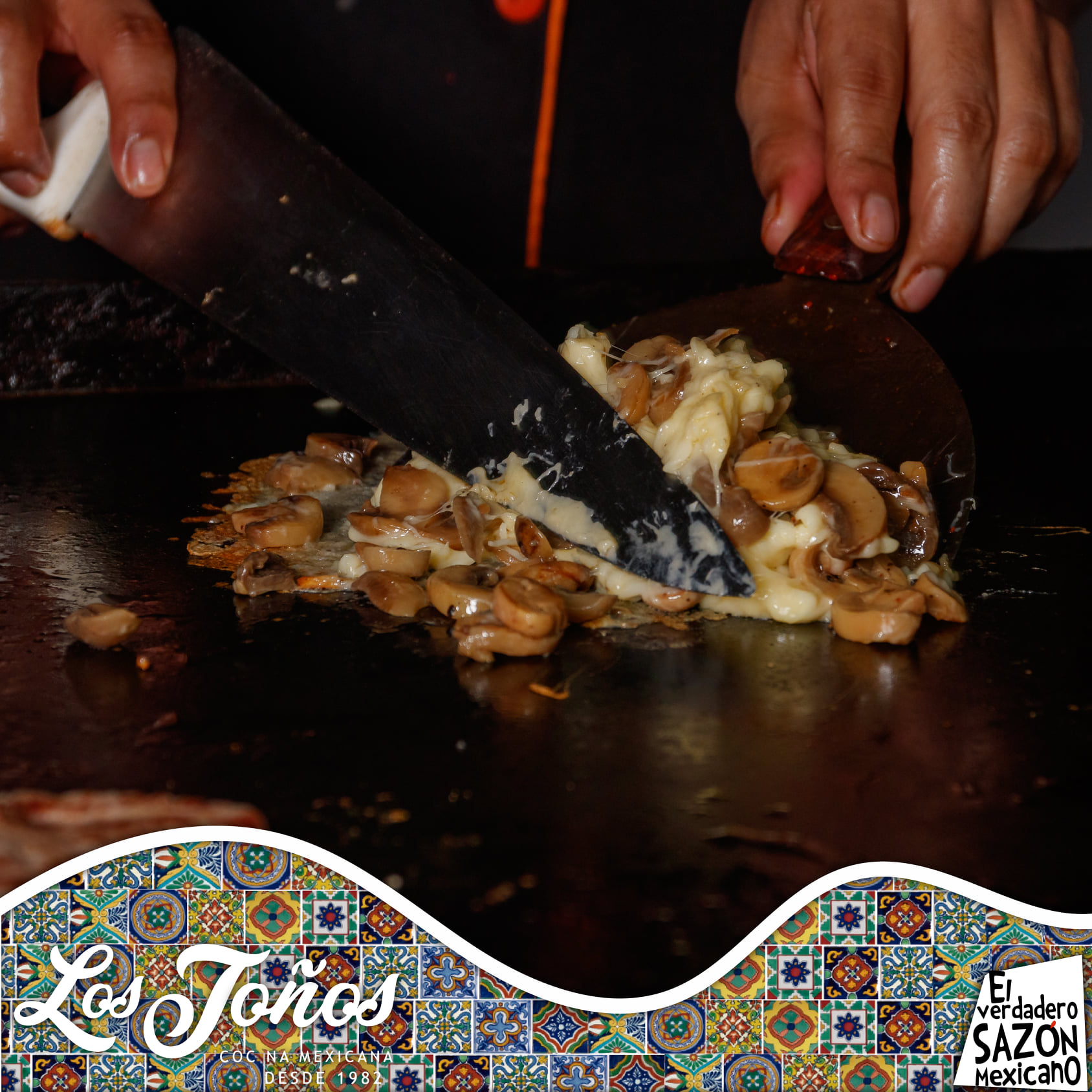 Alambre con pollo, cebolla, tocino, queso y champiñones.