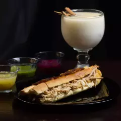 Un bolillo de pan francés con tu guiso favorito acompañado de cebolla blanca.