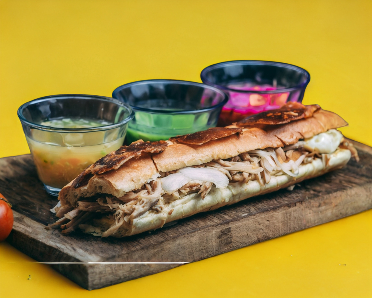 Media barra de pan francés con su guiso favorito acompañado de cebolla blanca.