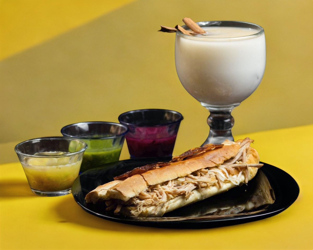 Un bolillo de pan francés con tu guiso favorito acompañado de cebolla blanca.