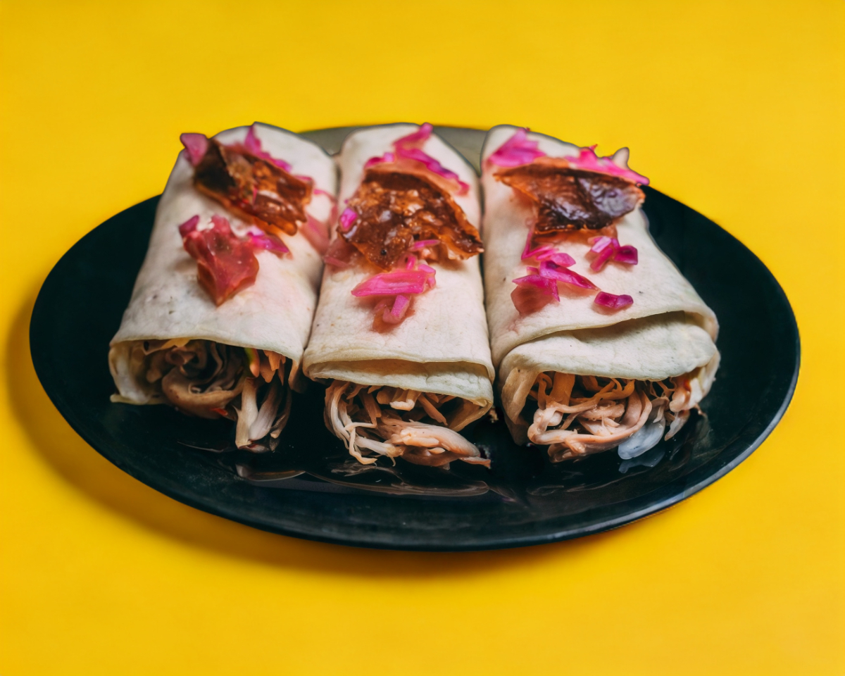 Tortilla de mesa con tu guiso favorito acompañado de cebolla blanca.