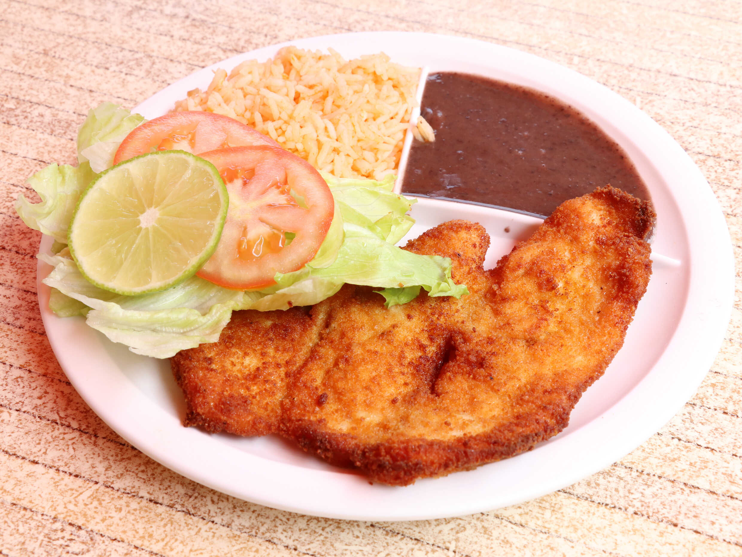 Con arroz y frijol.
